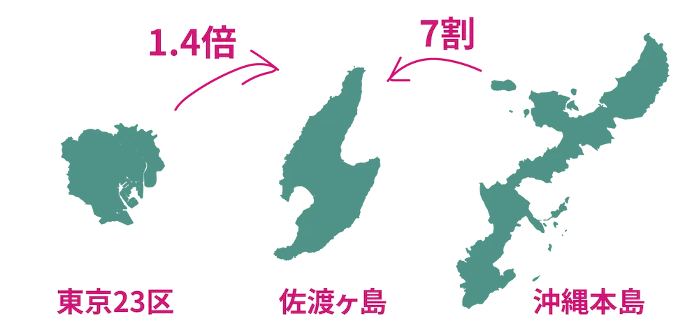 佐渡島がいかに大きいか、具体的な数字で見てみましょう。